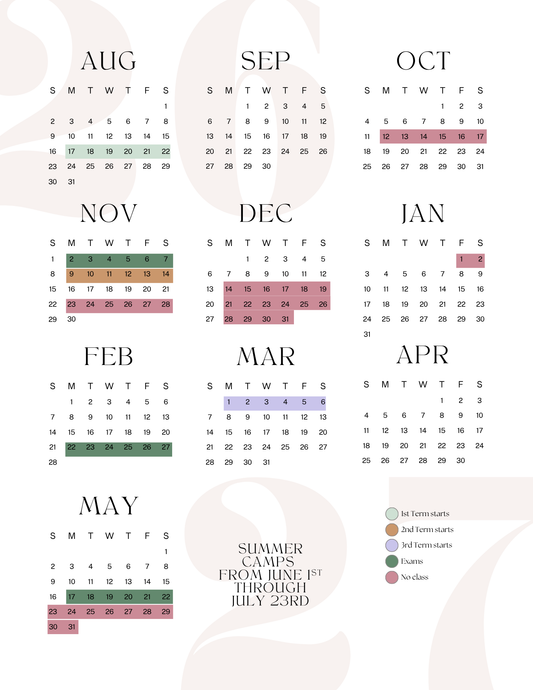 This chart can give you a general idea of our recommendation, but feel free to contact us for personalized help placing your children.